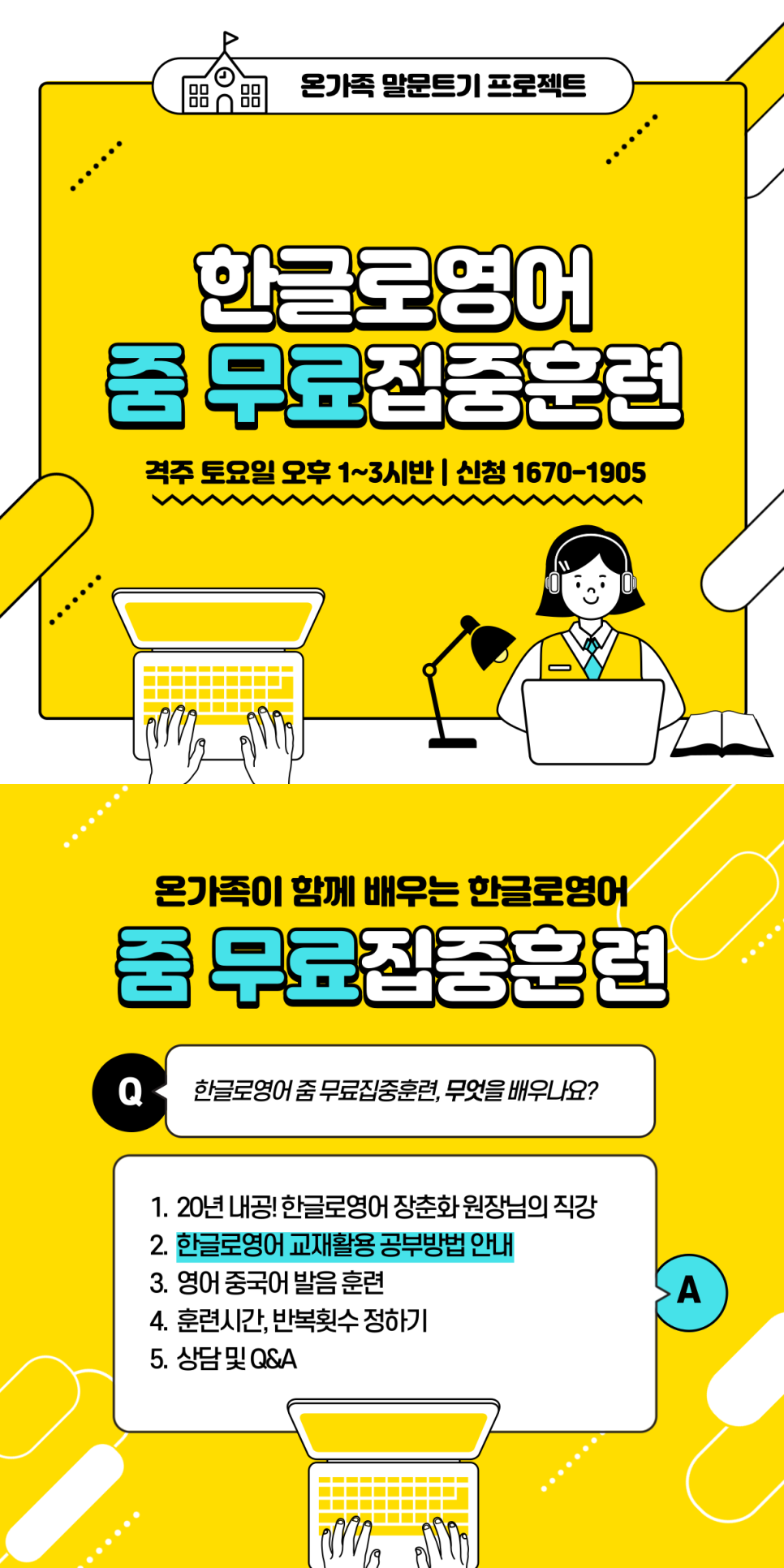 ★ 2025년 한글로영어 줌 무료집중훈련(격주 토요일 오후 1~3시, 매회 15명)