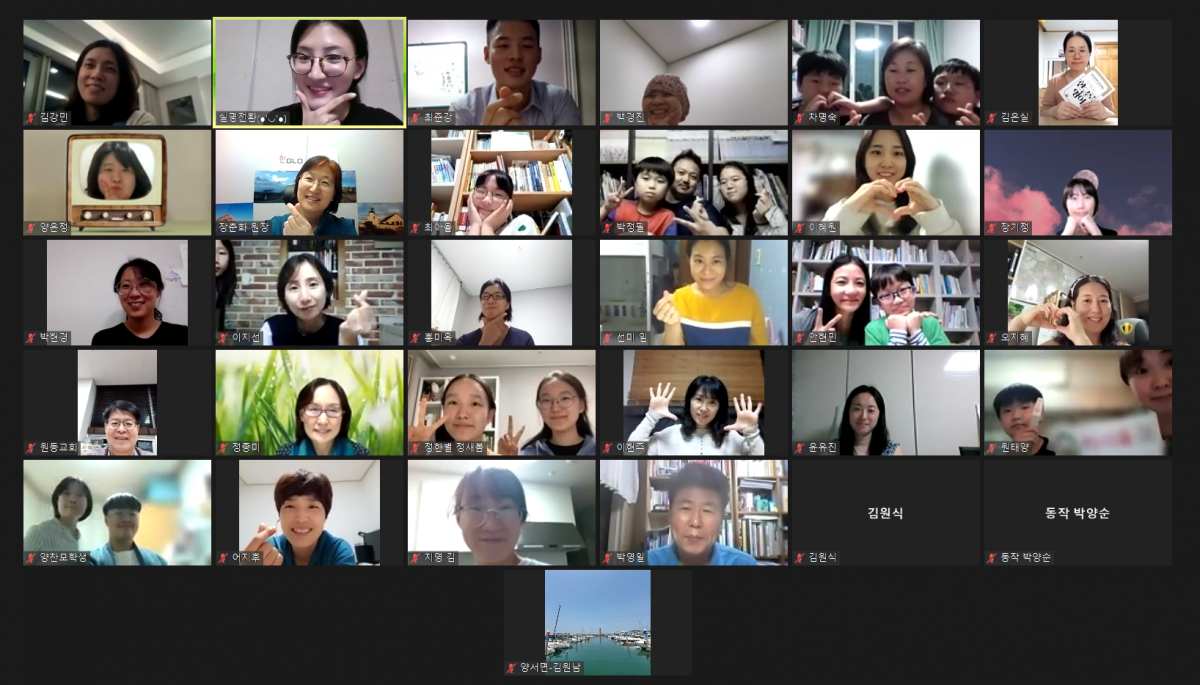 1. 줌 화상강의와 한글로영어 교재를 통해 각 가정 및 공부방에서도 적용할 수 있는 온라인 외국어 교습법을 안내
