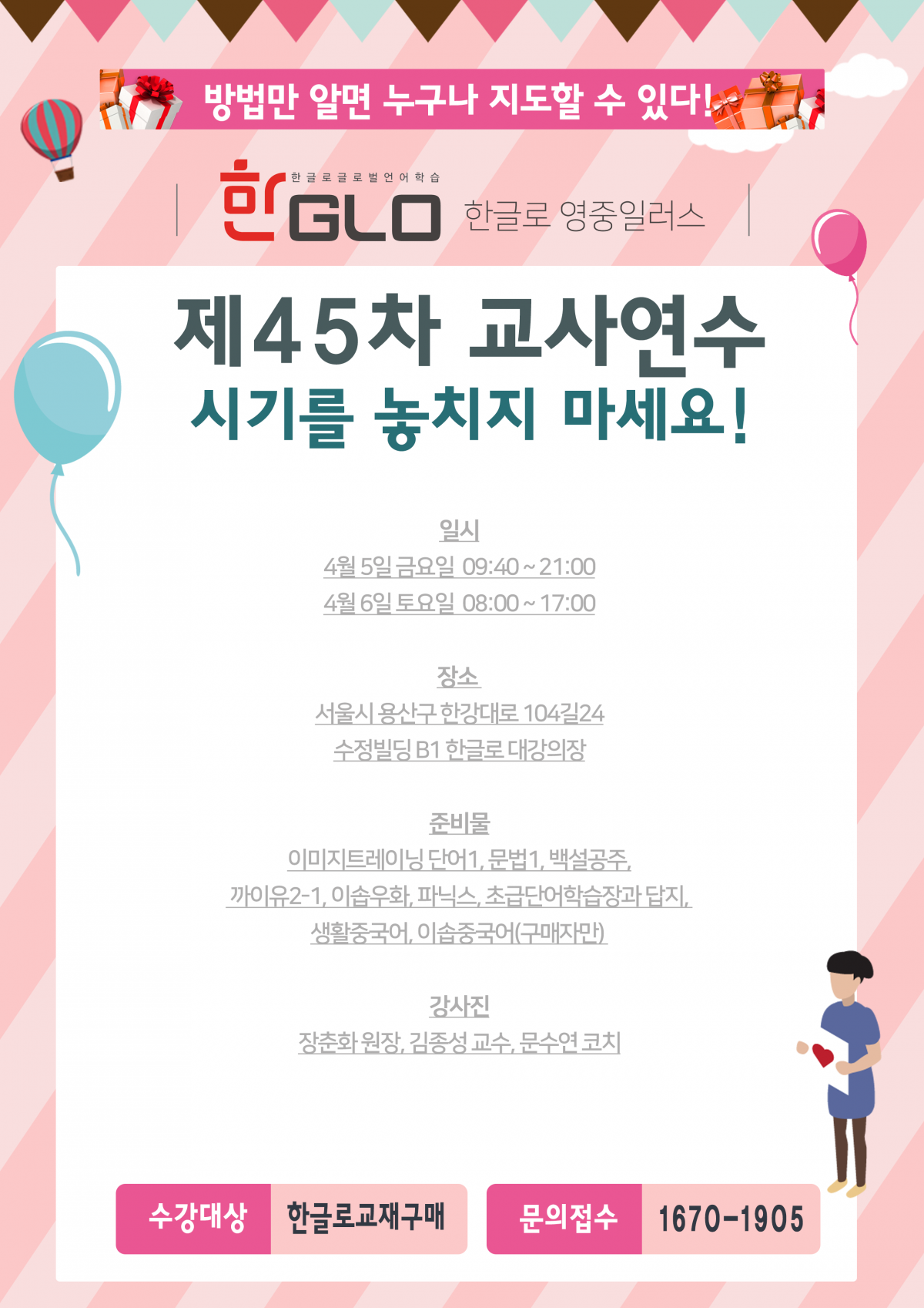 - 오는 방법 : 지하철 서울역 12번 출구에서 150m, 갈월동 버스정류장에서 50m(네이버지도에서 '한글로 강의장' 검색)