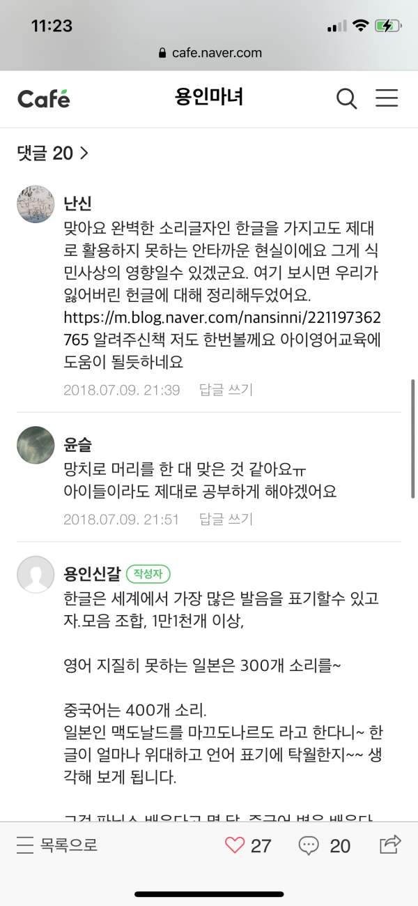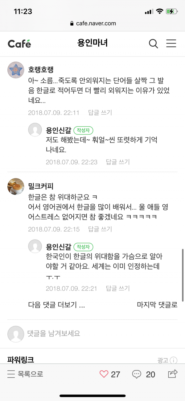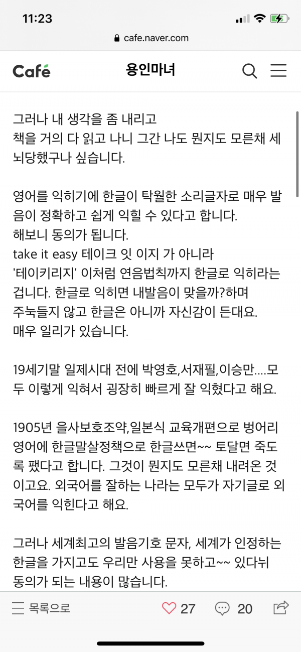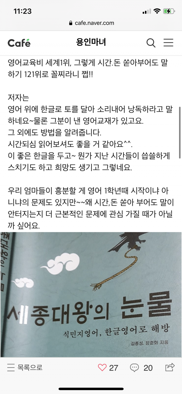 영어 아래 한글로 토달면 안된다고~ 했는데~ 페이지 정보 작성자 최고관리자 작성일 20-10-27 11:26 조회 12,502회 댓글 0건 관련링크 https://cafe.naver.com/unnammabook/257190 8606회 연결 본문 - 댓글목록 등록된 댓글이 없습니다. 이전글 다음글 목록