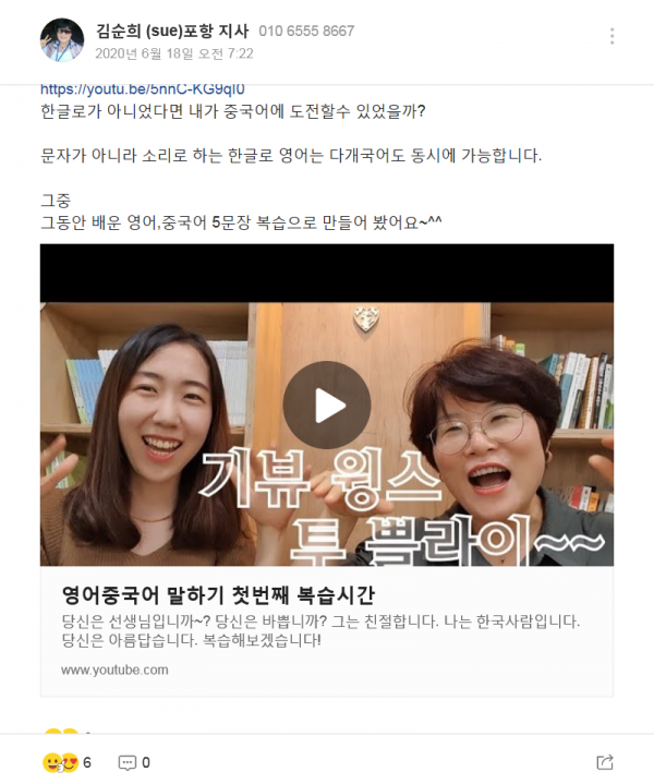 그중 그동안 배운 영어,중국어 5문장 복습으로 만들어 봤어요~^^