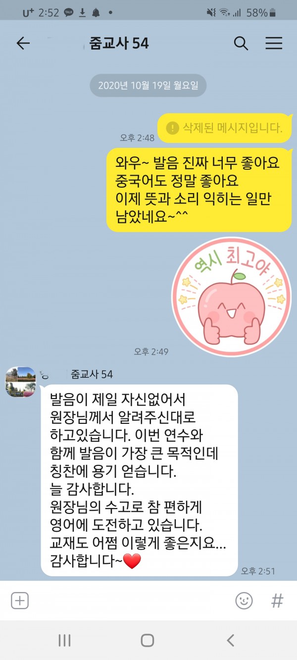 이번 연수와 함께 발음이 가장 큰 목적인 데