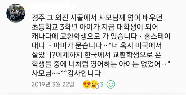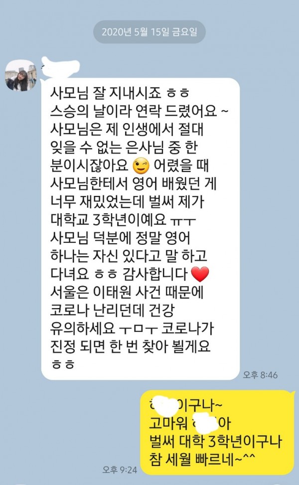 어릴때 원장님께 영어배우던게 너무 재밌었는데.. 덕분에 영어하나는 정말 자신있다고 말할 수 있어요