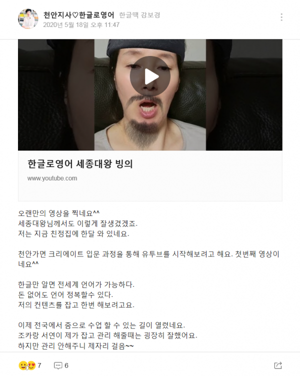 천안가면 크리에이트 입문 과정을 통해 유투브를 시작해보려고 해요. 첫번째 영상이네요^^