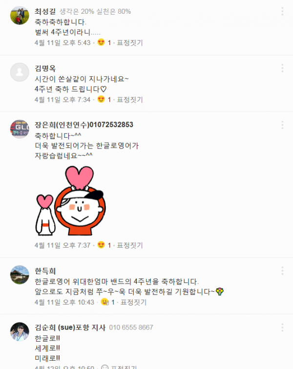 한글로영어 위대한엄마 네이버밴드의 4주년입니다!
