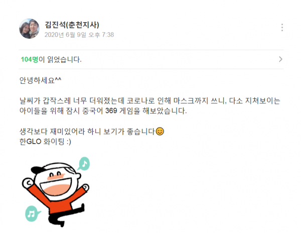 날씨가 갑작스레 너무 더워졌는데 코로나로 인해 마스크까지 쓰니, 다소 지쳐보이는 아이들을 위해 잠시 중국어 369 게임을 해보았습니다.