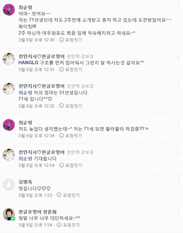 첫번째 교육생 저의 엄마입니다.