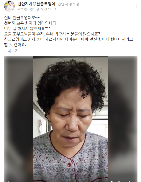 [출처] 네이버밴드 '한글로영어 위대한엄마' 20.3.8