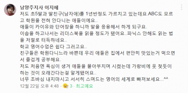 [출처] 네이버밴드 '한글로영어 위대한엄마' 19.12.22