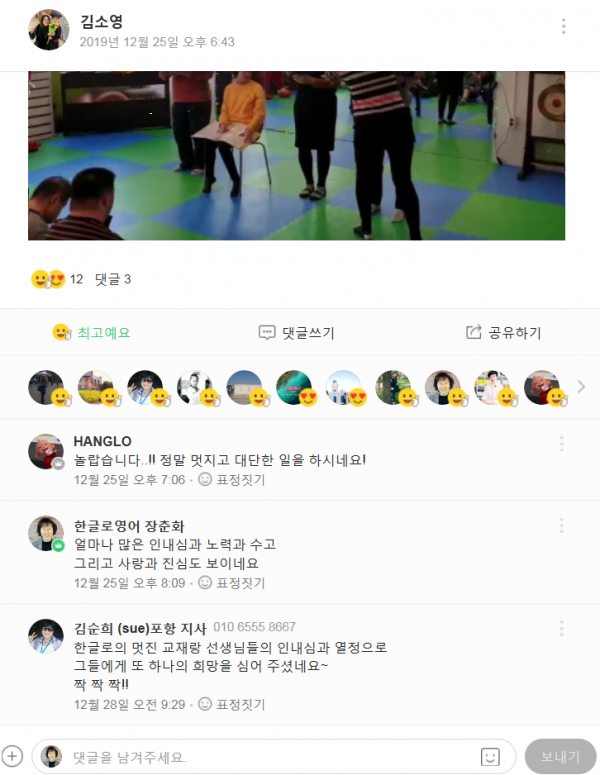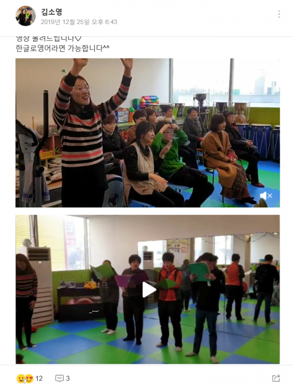 [출처] 네이버밴드 '한글로영어 위대한엄마' 19.12.25