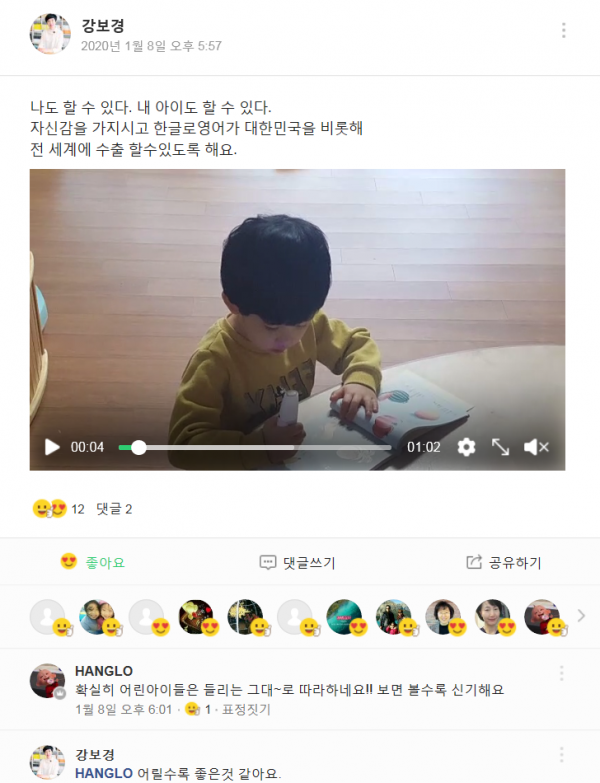 [출처] 네이버밴드 '한글로영어 위대한엄마' 20.1.8