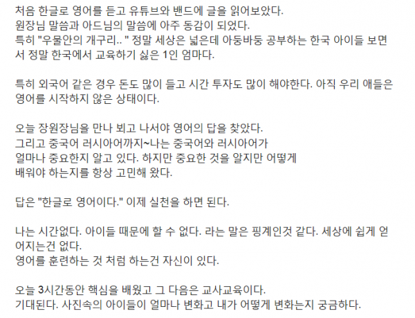 [출처] 네이버밴드 '한글로영어 위대한엄마' 19.12.9
