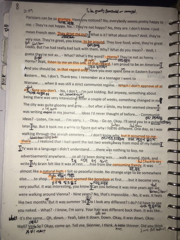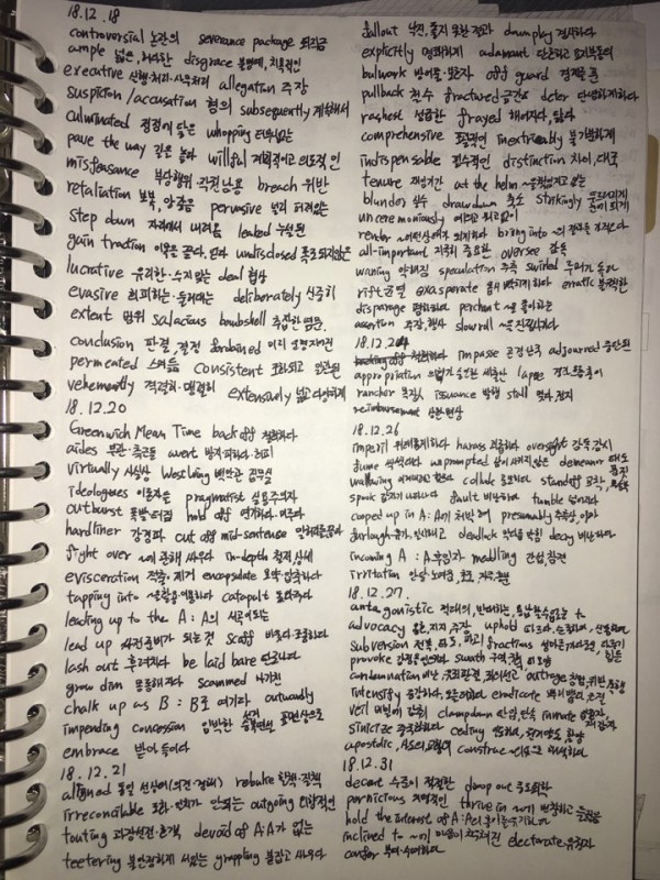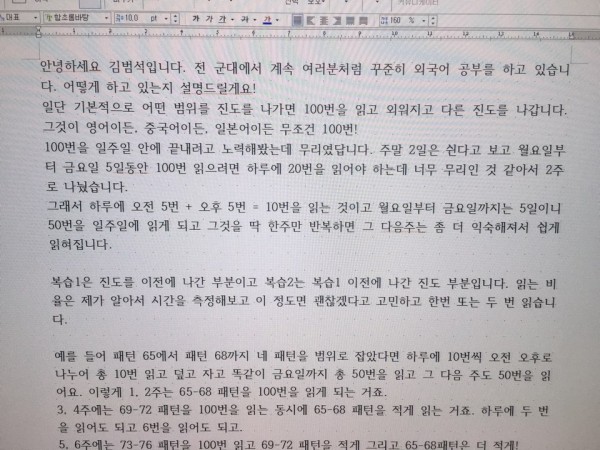 중국어는 한번씩 싸지방에서 중국친구들하고 영상통화하면서 중국어 감을 유지하는 중이고, 영어는 통역병으로 복무하면서 통역시 필요한 전문용어들이나 시사영어를 중심으로 더 실력을 늘려나가는 중이고, 좀 더 시간이 나면 재미있게 본 영화 대사들을 읽는데요. 한번씩 혀가 꼬이거나 발음이 잘 안되는 것 같으면 늘 해왔던 방식으로 한글로 토달아서 연습하기도 해요. (아래 여덟번째 아홉번째 사진 참고) 아.. 앗 여기서 주의할 점은.. 이미 범석군처럼 영어를 술술 자연스럽게 읽고 말할 수 있으면 한글표기가 따로 필요없겠지만 또박또박 읽고 회화가 부자연스럽다면 가장 정확하고 자연스러운 한글표기를 우선적으로 읽어주며 연습하셔야 해요! 꼭!