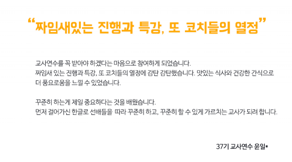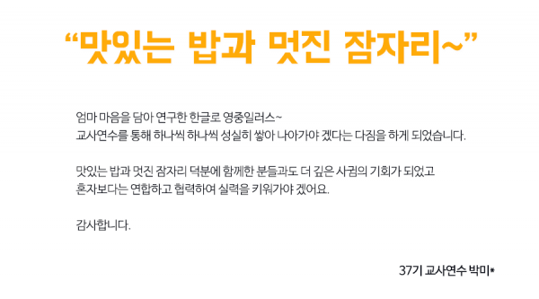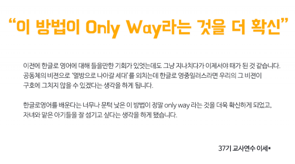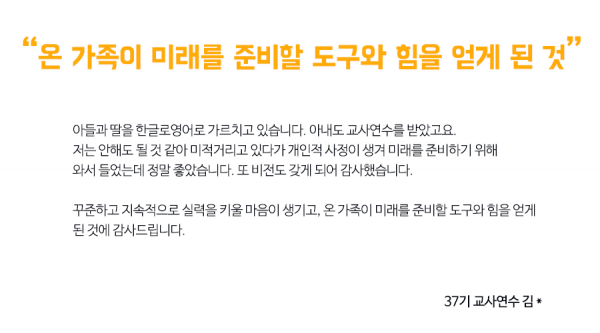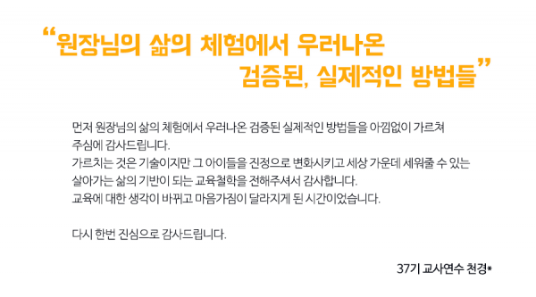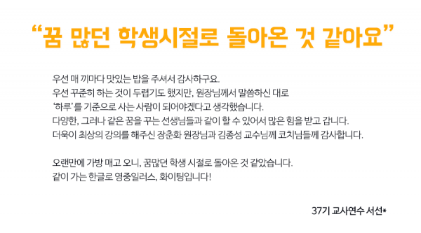 한글로 제37차 교사연수 참석하신 분들 중 8개의 후기를 뽑아보았습니다!!