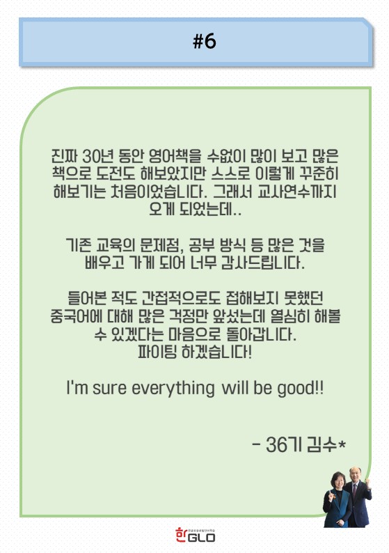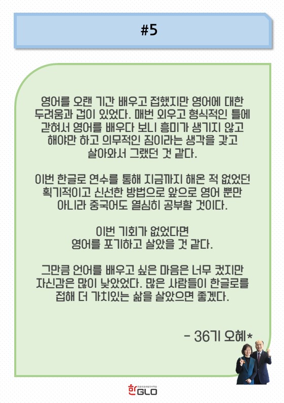 한글로 제36차 교사연수 참석하신 분들 중 8개의 후기를 뽑아보았습니다!!