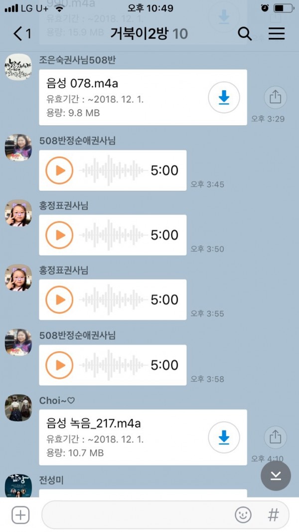 평균나이 60이 넘으셨고요. 매일매일 카톡으로 연습하는것을 올리시고 주중에 한번 만나 힘께 연습하고 있답니다.