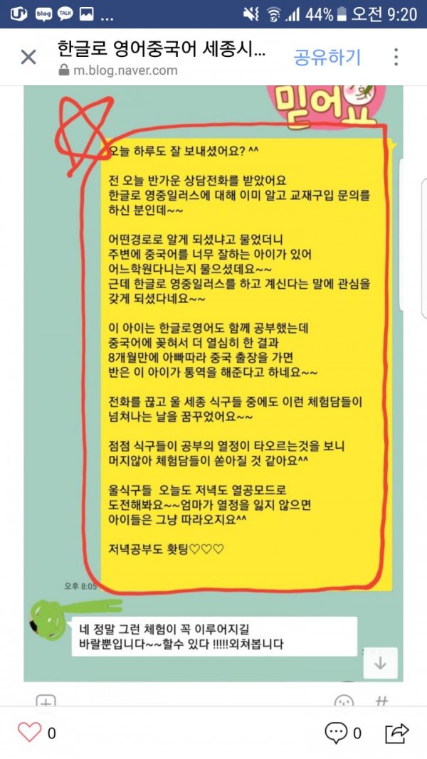 [출처] 네이버밴드 '한글로영어 위대한엄마' 18.03.21