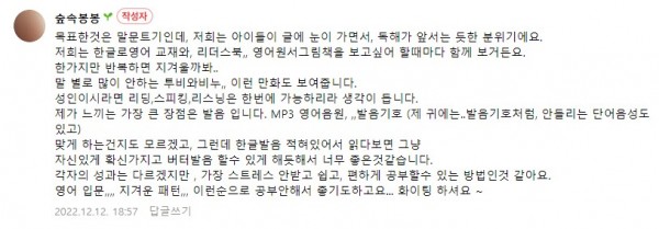 알고있나 영어단어 읽어주면,,, ? ???... 에이..발음을 틀리게 했으니까 못알아듣죠.. ㅠㅠ 라고 할정도..