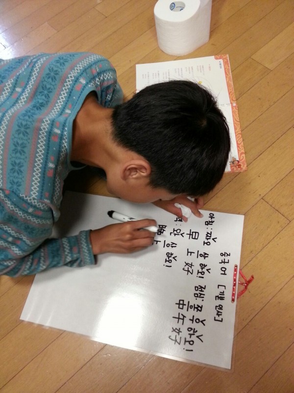 이번에 서울역센터 다녀 오며 원장님 책상을 보고 놀랐습니다. 원장님께서 칠판에 중국어를 써놓으시고 왔다갔다 하시며 틈나면 보신다고 하고 단어들을 적어서 책상에 붙혀 놓으셨습니다. 원장님도 저리 하시는데.... 그래서 저도 원장님의 방법을 따라 하려고 아들과 코팅된 종이에 중국어를 적어 누가 빨리 외우나를 하고 있습니다.^^ (물론 아들이 더 잘 외우겠지만....)