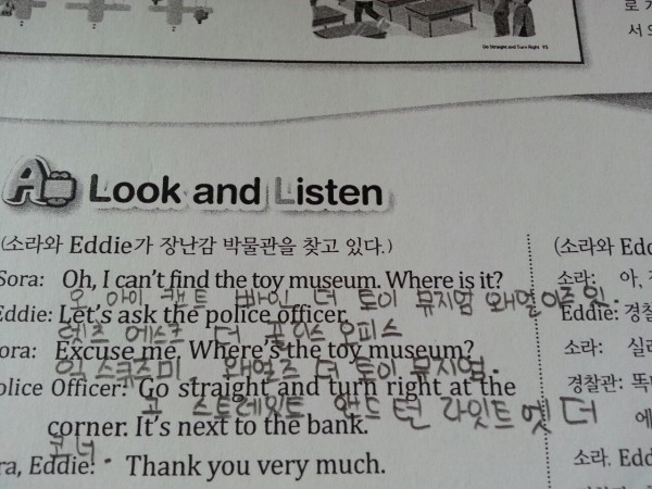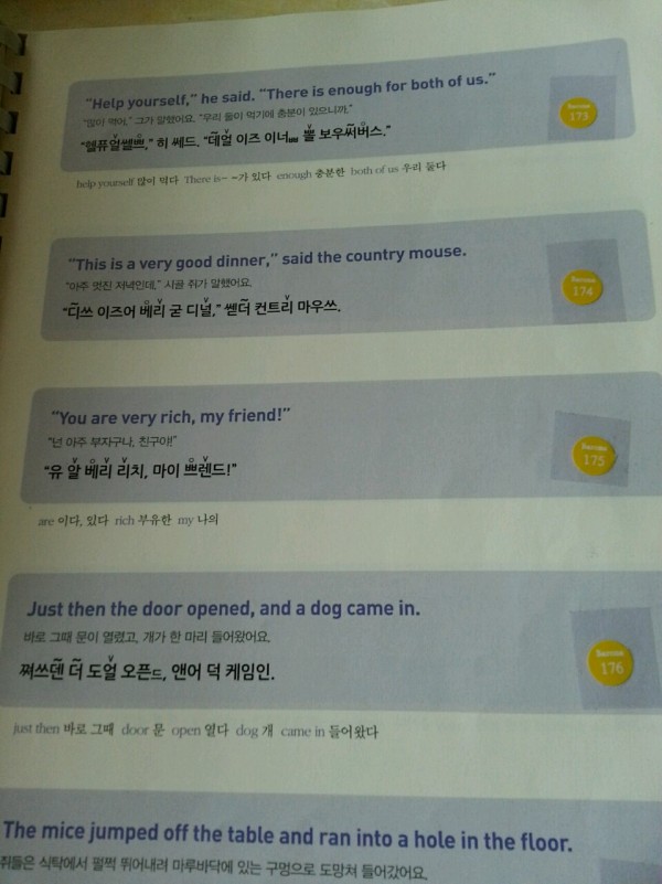 제가 아이들 영어를 어찌해야할지 고민하는걸 아시고는 본인이 갖고 계신 교재를 보여주시며 시켜보라고 하셨습니다. 그러면서 백주년기념관에서 공개강좌를 한다고 가보라고도 하셨습니다. 그런데 저는 옛날에 교육을 받은 사람이라 그랬는지 처음 교재를 보고 한글이 써져 있어 좀 당황했습니다. 학교다닐때 영어선생님은 교과서에 한글로 모르는 단어에 소리를 쓰는것도 혼내셨던 기억이 있었는데, 이건 책 자체가 다 한글로 음을 달아 놓은 책이였습니다. 그래서 그냥 보고 넘겼습니다. 그리 몇 달이 흘렀던것 같습니다.