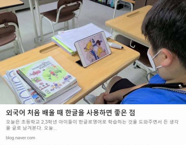 오늘은 초등학교 2,3학년 아이들이 한글로영어로 학습하는 것을 도와주면서 든 생각을 글로 남겨본다. 오늘 이런 생각이 들게 해 준 친구들은 나와 함께 한글로영어로 약 8개월 공부한 아이들이다. 그리고, 학교에서 하는 것을 제외하면 약 8개월 전 처음으로 영어를 제대로 배우기 시작했다. 두 아이 모두 처음 우리 공부방에 왔을 때, 듣기와 말하기로 영어를 배운 경험도 없고 당연히 영어 문자는 거의 읽지 못하는 상태였다.