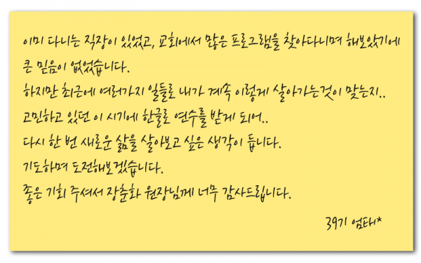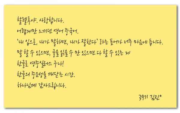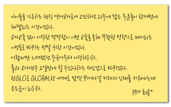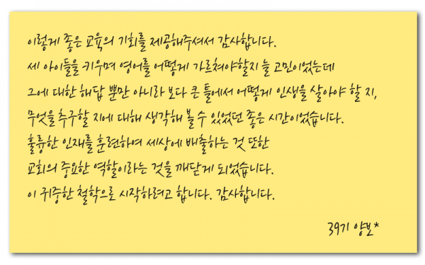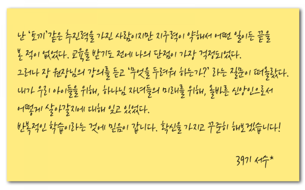 한글로 제39차 천안교회 교사연수 참석하신 분들 중 8개의 후기를 뽑아보았습니다!!