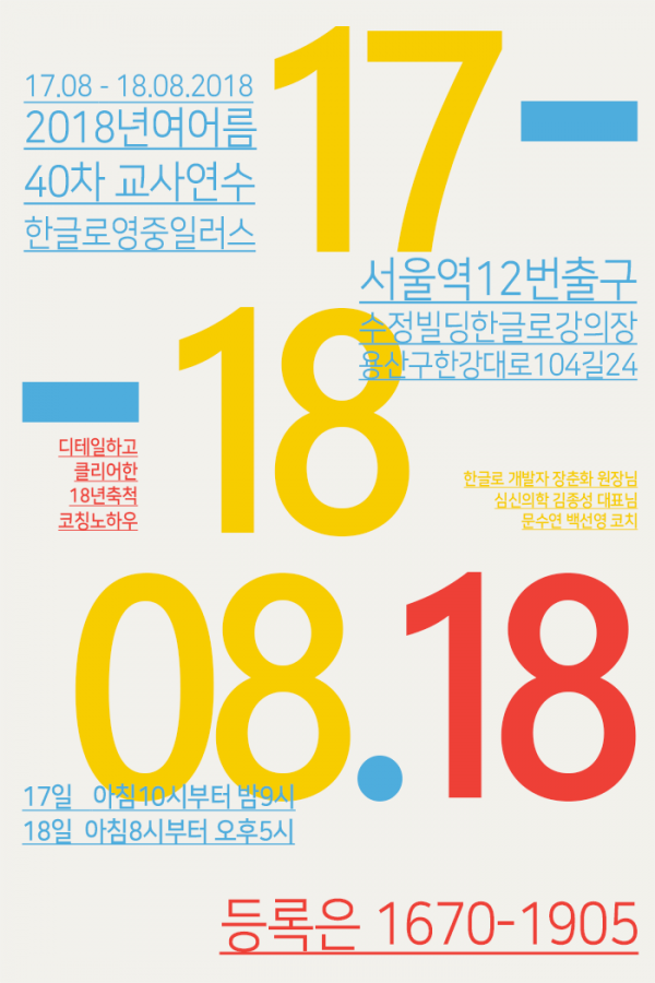 [공지] 한글로 영어중국어 제40차 교사연수 공지(8월17,18일)